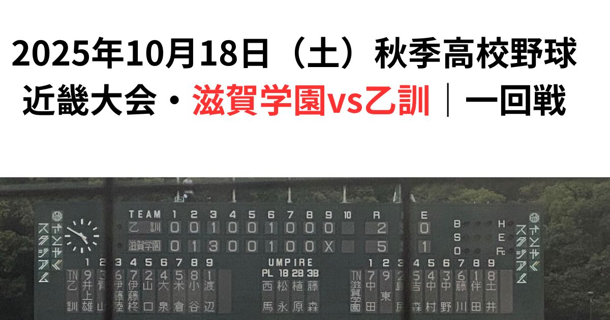 2025年10月18日(土)秋季近畿大会1回戦が奈良県のさとやくスタジアムで開催された。滋賀県から3位で出場する滋賀学園と京都府の2位、乙訓高校と対戦した。